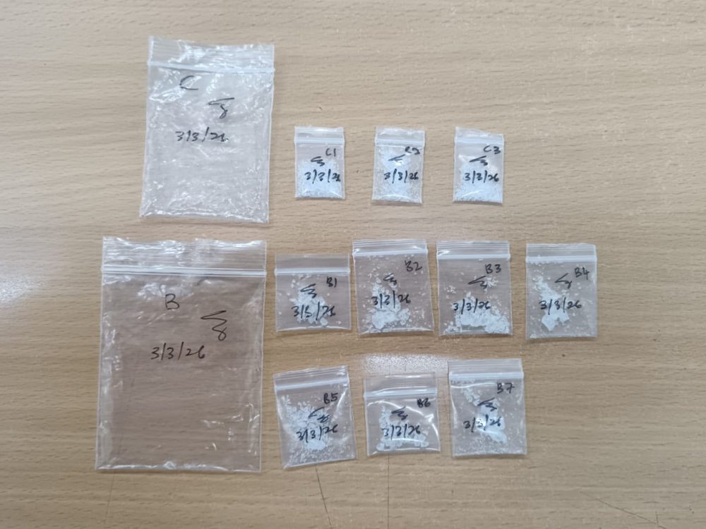 Ketua Polis Daerah Padawan, Mohd Irwan Hafiz Md Radzi, berkata pihak polis turut merampas beberapa ketulan kristal disyaki dadah jenis syabu seberat 5.50 gram, yang dianggarkan bernilai kira-kira RM600.