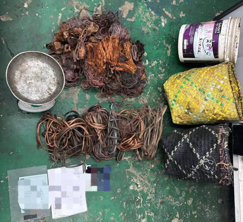 Hasil tangkapan, pihak polis turut merampas sejumlah kabel tembaga daripada wanita berkenaan yang dipercayai hasil kegiatan curi bagi membantu siasatan serta dijadikan bahan bukti kes.