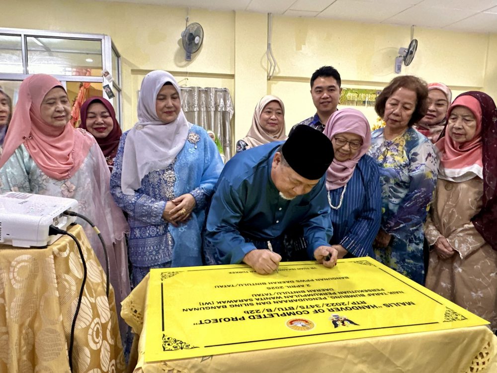 ISKANDAR Turkee dan tetamu jemputan lain menyempurnakan simbolik penyerahan projek RTP kepada PPWS Bintulu/Tatau.
