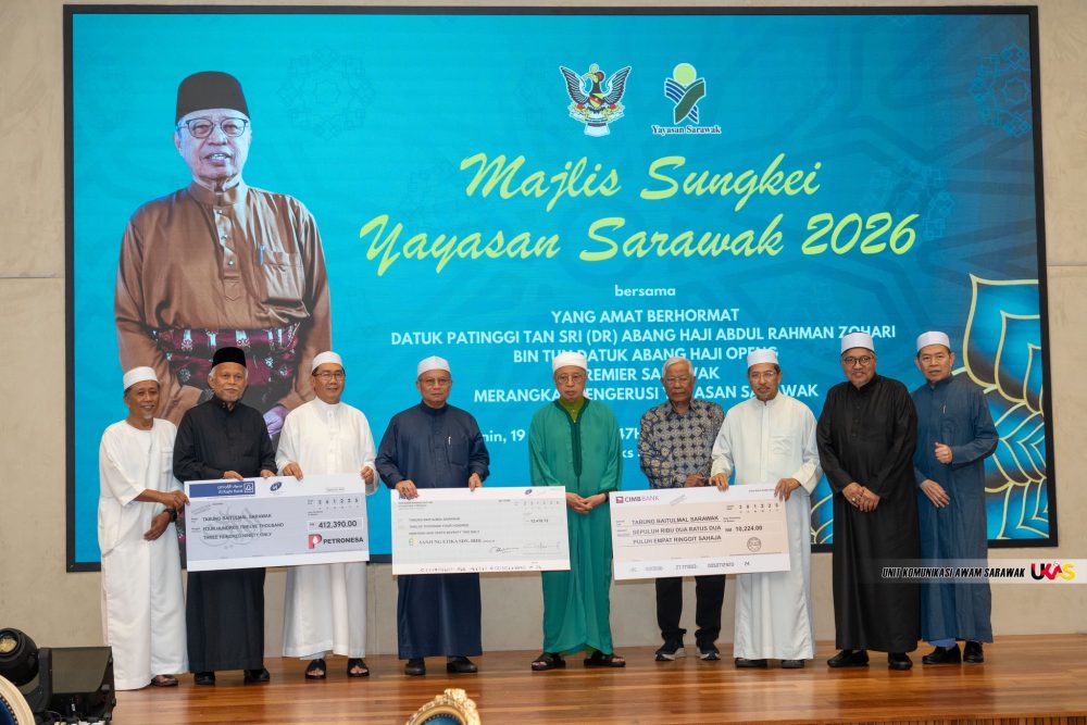Majlis tersebut turut menyaksikan simbolik penyerahan zakat perniagaan daripada tiga anak syarikat Yayasan Sarawak kepada Tabung Baitulmal Sarawak (TBS).