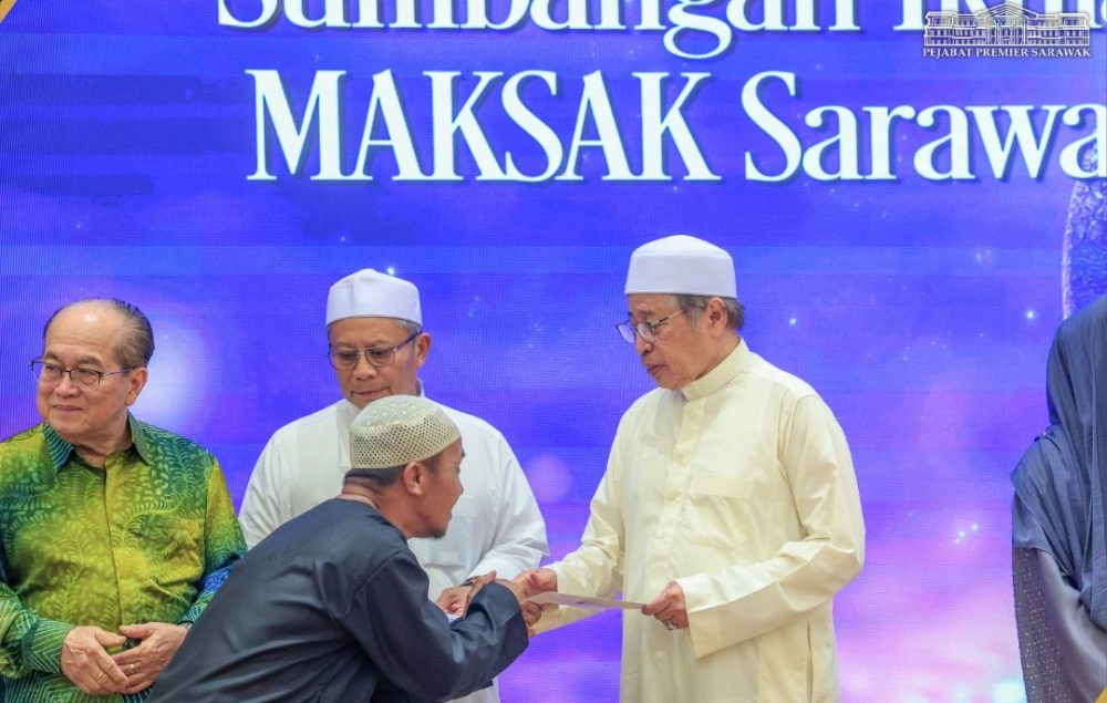 Sejurus selesai berbuka puasa, Premier Sarawak selaku Penaung Majlis Kebajikan dan Sukan Anggota-Anggota Kerajaan (MAKSAK) Sarawak telah menyampaikan sumbangan ikhlas kepada para penjawat awam.