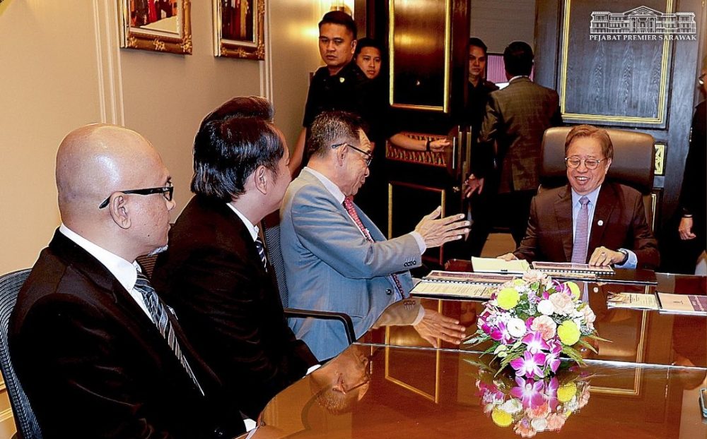 PETRA JAYA: Premier Sarawak, Datuk Patinggi Tan Sri Abang Johari Tun Openg menerima dua kunjungan hormat berasingan di pejabatnya di Kompleks Satria Pertiwi, di sini, hari ini.