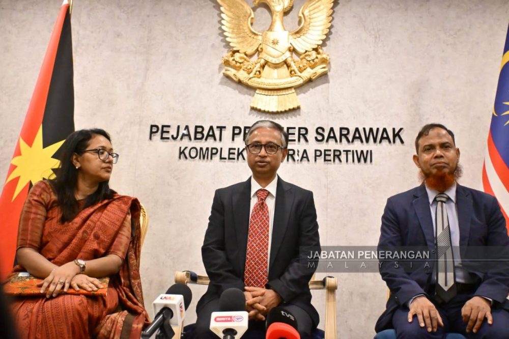 Turut hadir, Timbalan Menteri di Jabatan Premier Sarawak (Pemantauan Buruh, Imigresen dan Projek) Datuk Gerawat Gala, Pengarah Pejabat Wilayah Sarawak, Kementerian Luar Negeri Dato Fenny Nuli, Timbalan Pesuruhjaya Tinggi Bangladesh Mosammat Shahanara Monica, serta Menteri Buruh Bangladesh Md Siddiqur Rahman.- JAPEN