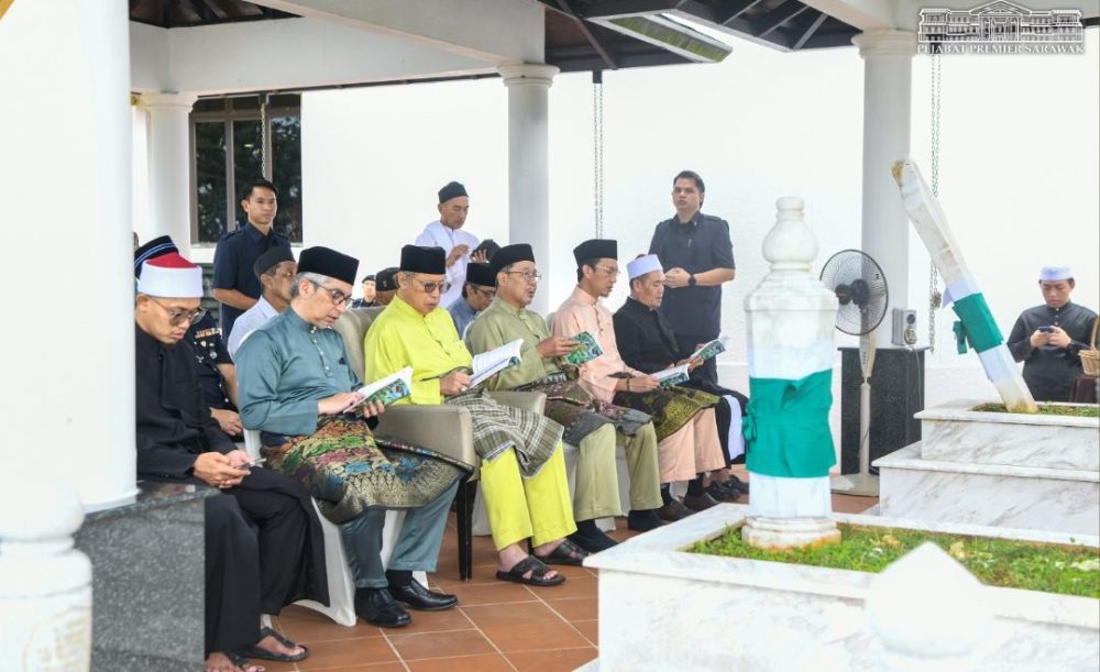 Abang Johari beserta tetamu lain membacakan surah Yasin yang dipimpin Imam Besar Sarawak, Sahibul Fadilah Dato Mustapha Kamal Ahmad Fauzi.