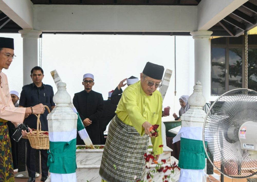 PREMIER Sarawak, Datuk Patinggi Tan Sri Abang Johari Tun Openg menziarahi pusara ayah dan ibunya di Tanah Perkuburan Islam Masjid Bandaraya Kuching, hari ini. Foto Pejabat Premier Sarawak