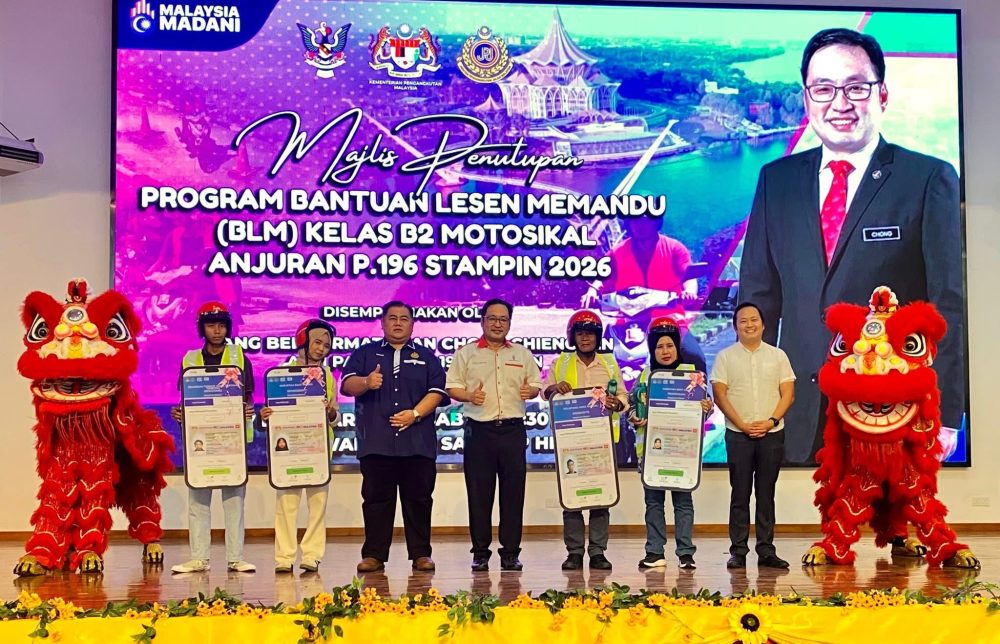 KUCHING: Majlis Penutupan Bantuan Lesen Memandu (BLM) Kelas B2 Motosikal anjuran Stampin berlangsung dengan jayanya di Dewan Sekolah Jenis Kebangsaan (Cina) Sam Hap Hin, Kota Sentosa, hari ini.