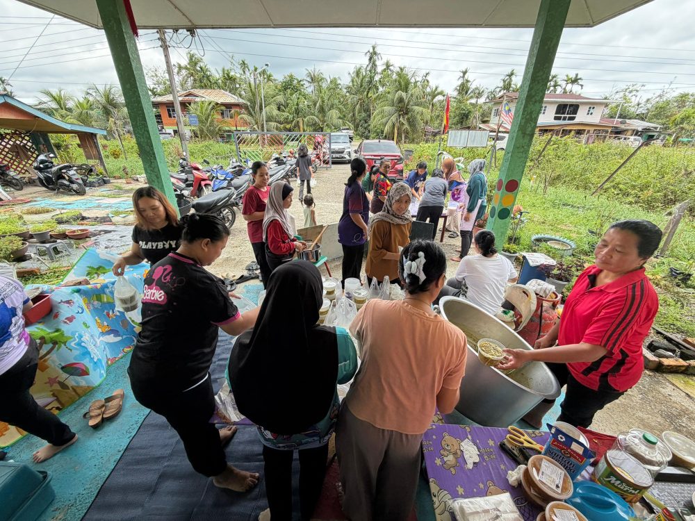 Program gotong-royong penyediaan bubur pedas dan bubur lelu’iek itu menyaksikan kerjasama erat ketiga-tiga organisasi yang berganding bahu menyediakan juadah sebelum diagihkan kepada penduduk Kampung Teh dan kawasan sekitar sebagai tanda kebersamaan serta semangat kekitaan, baru-baru ini.