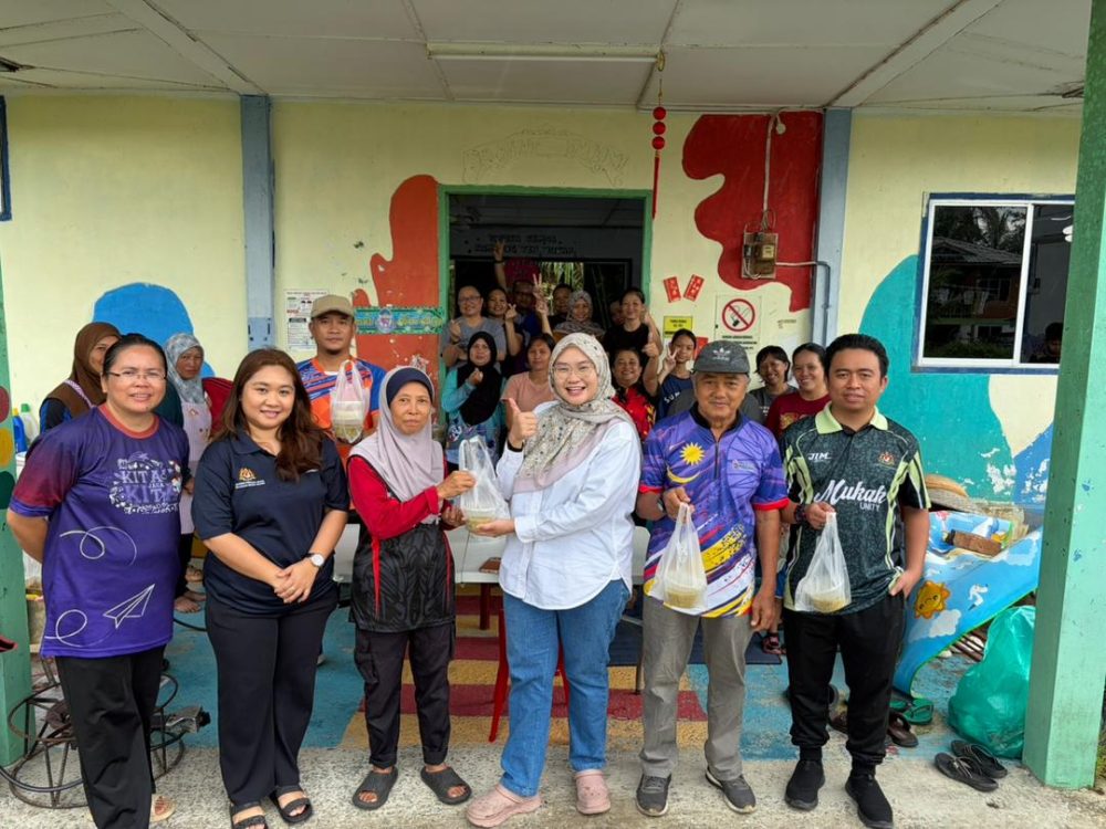 Nurfatimah menyampaikan bubur pedas kepada masyarakat di Kampung Teh, Nur Hidayah Abdullah.