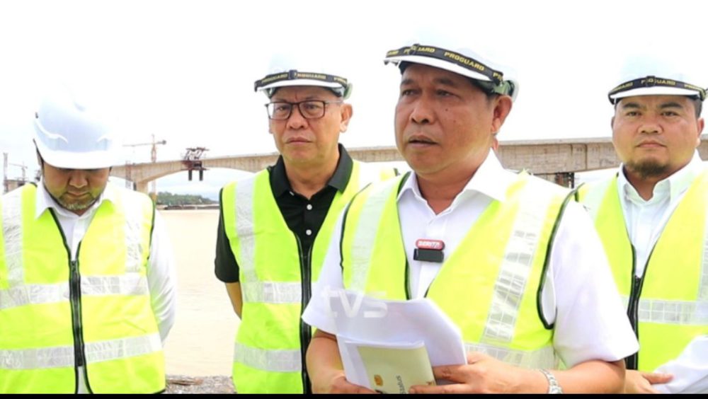DATUK Aidel Lariwoo dan Datuk Abdullah Saidol ketika meninjau perkembangan projek pembinaan Jambatan Batang Paloh
