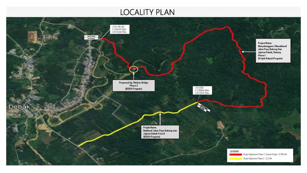 Skop pelaksanaan Fasa 1 merangkumi menaik taraf kira-kira enam kilometer jalan tanah sedia ada kepada jalan batu bagi memastikan laluan lebih kukuh dan selamat digunakan oleh penduduk setempat.