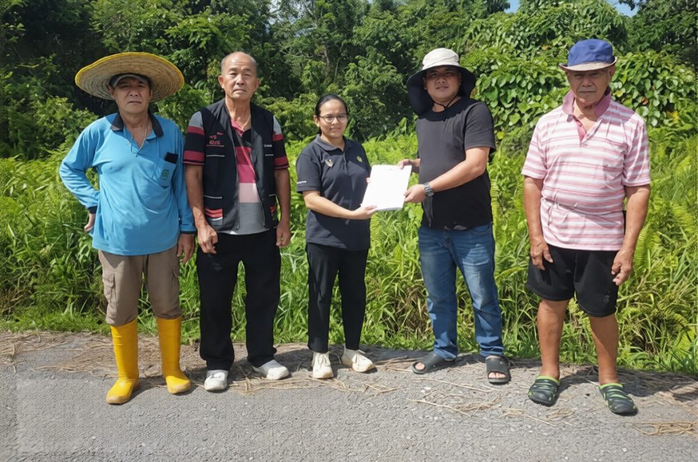 WONG Soon Mee (dua kiri) menyaksikan penyerahan tapak projek pada semalam. Foto Pusat Khidmat Parlimen Sarikei