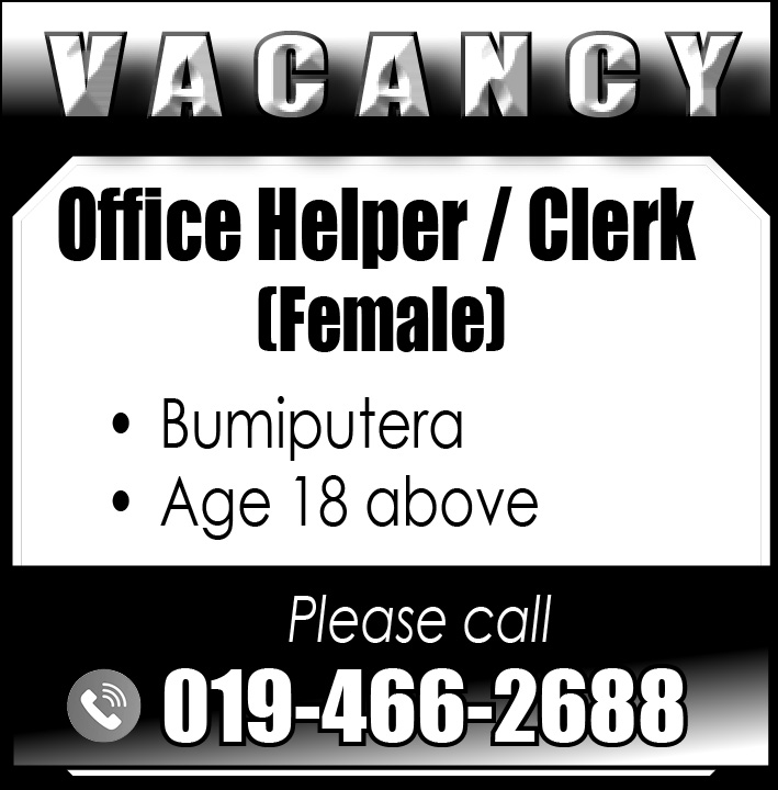 IKLAN Rabu, 19 November 2025, Vacancy, Office Helper/Clerk (female) Utusan Sarawak 7 hours ago Continue Reading Previous: Rabu, 19-20 November 2025, SEB Notis Gangguan Bekalan Elektrik Kuching