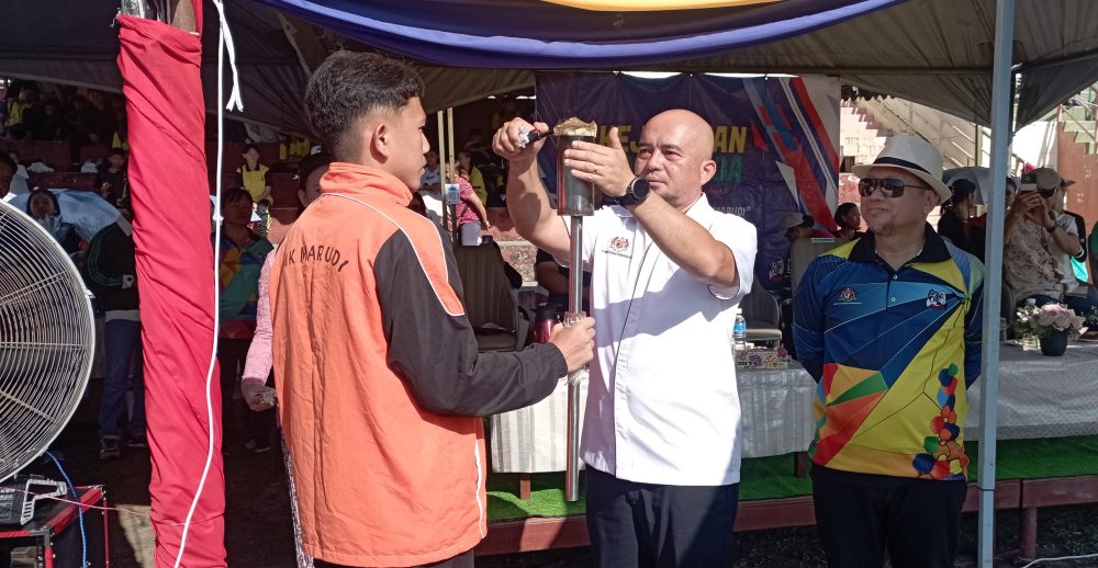 GIMIK…Anderson Jawi Isa bagi mewakili Datuk Gerawat Gala menyempurnakan perasmian Kejohanan Sukan Tahunan SMK Marudi di Komplek Sukan Marudi. Foto Jiku Juguon
