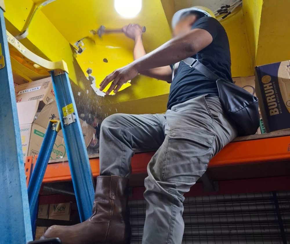 “Dalam operasi berkenaan, pasukan pemeriksaan meter terpaksa memecahkan sebahagian siling gypsum (papan binaan ringan) untuk mendedahkan sambungan haram sebelum semua kabel tersebut ditanggalkan dan dirampas sebagai bahan bukti.