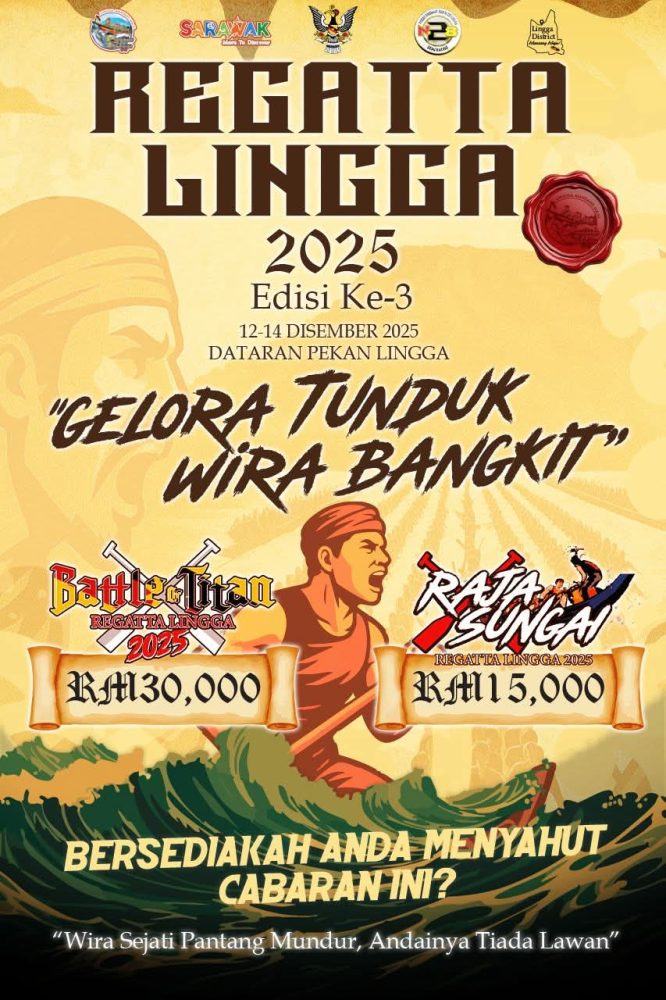 LINGGA: Sungai Lingga bakal bergema semula dengan sorakan dan dentuman ombak apabila Regata Lingga 2025 kembali dengan tema penuh semangat ‘Gelora Tunduk, Wira Bangkit’.