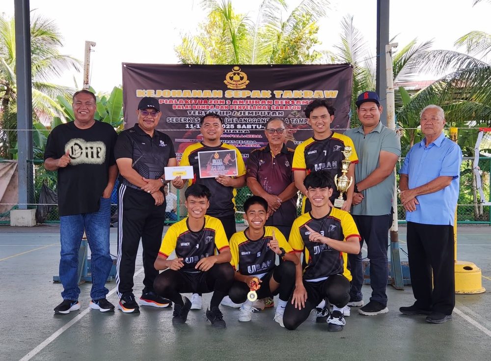 Regu Kestap A Pusa muncul juara Kejohanan Sepak Takraw Tertutup dan Jemputan Piala Ketua Zon 3 Sarawak dekat sini kelmarin. Foto: Pusat Khidmat ADUN Kalaka