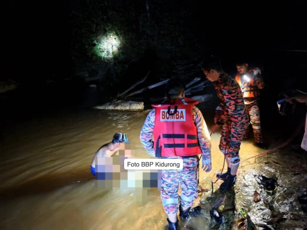 Jabatan Bomba dan Penyelamat Malaysia (JBPM) Sarawak memaklumkan mayat Darren Dakun Paruscrum, 12, ditemukan orang awam pada 11.19 malam, sekitar lima meter dari tebing sungai.