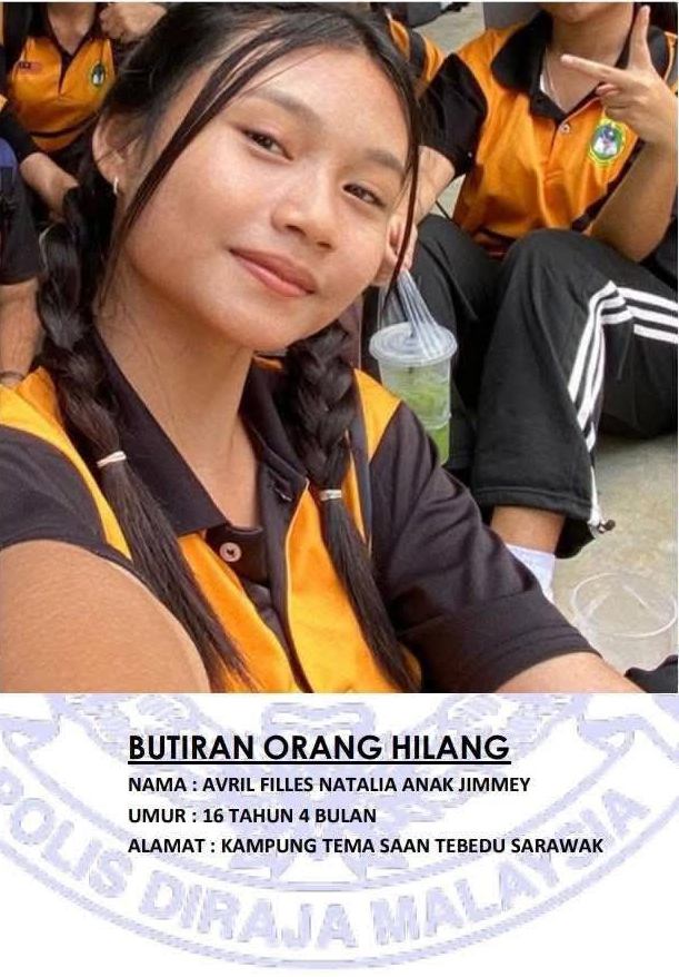 SERIAN: Seorang remaja perempuan berusia 16 tahun dilaporkan hilang di Kampung Tema Saan, Tebedu.