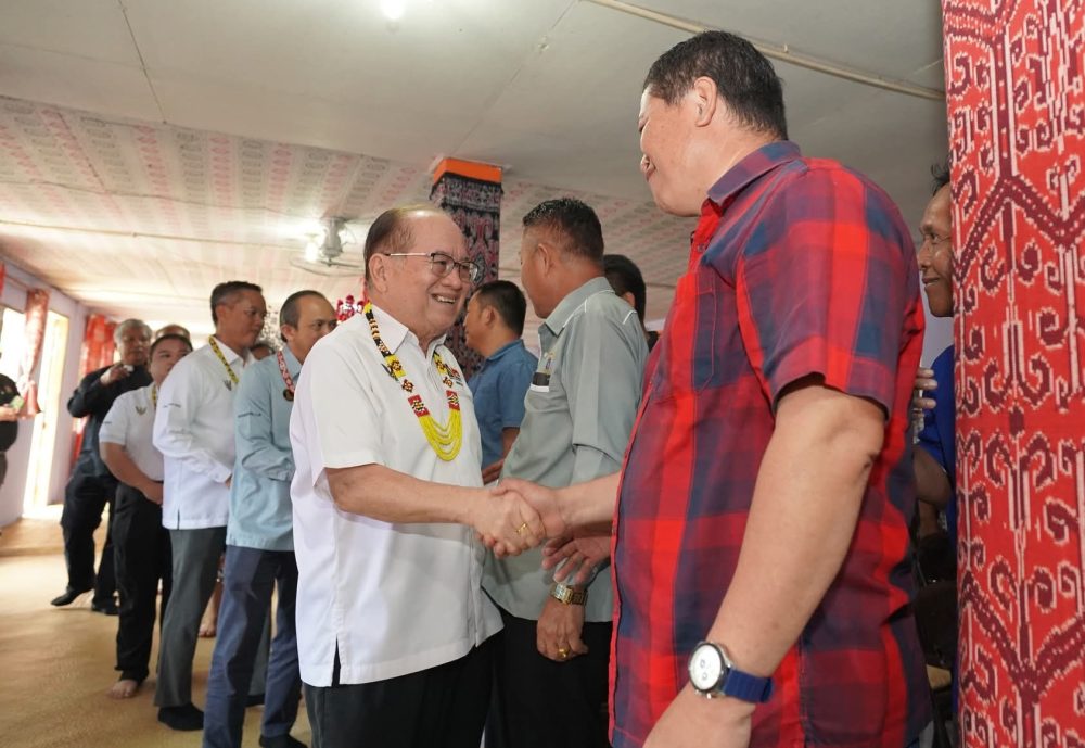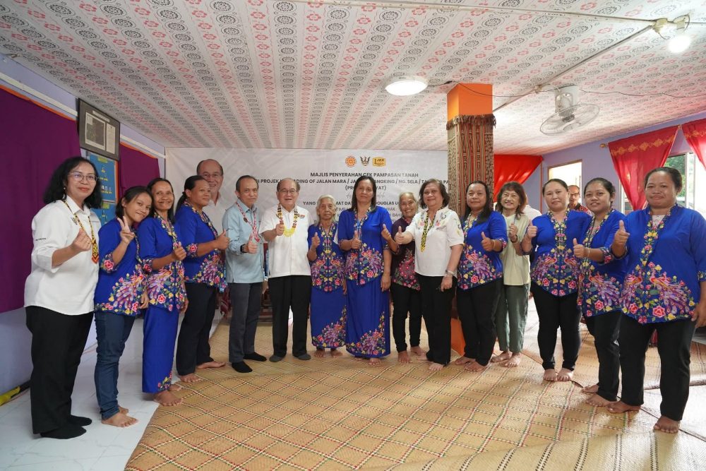 DATUK Amar Douglas Uggah Embas semasa Majlis Penyerahan Cek Pampasan Tanah bagi Projek Menaik Taraf Jalan Mara, Jalan Selangking, Nanga Sela dan Tanjung Paoh di sini hari ini. Foto: Pejabat Timbalan Premier 1