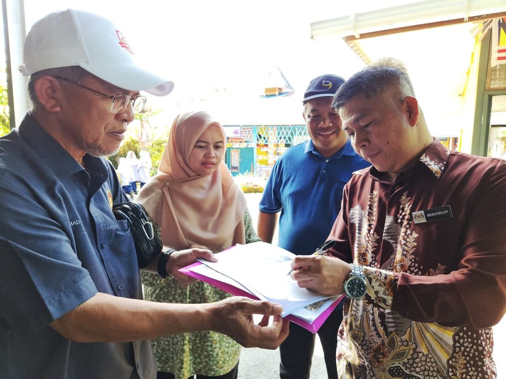 MOHAMAD Duri hadir bagi menyempurnakan majlis serah tapak projek naik taraf Dataran Ilmu dan kerja-kerja berkaitan di sekolah berkenaan. Foto: Pusat Khidmat ADUN Kalaka