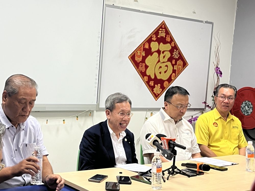 Datuk Amar Dr. Sim Kui Hian, bersama wakil SJKC Bantuan Sarawak ketika sidang media Penyerahan Peralatan Bilik Darjah Pintar & Bahan Digital bagi Sekolah Cina kerajaan Sarawak.