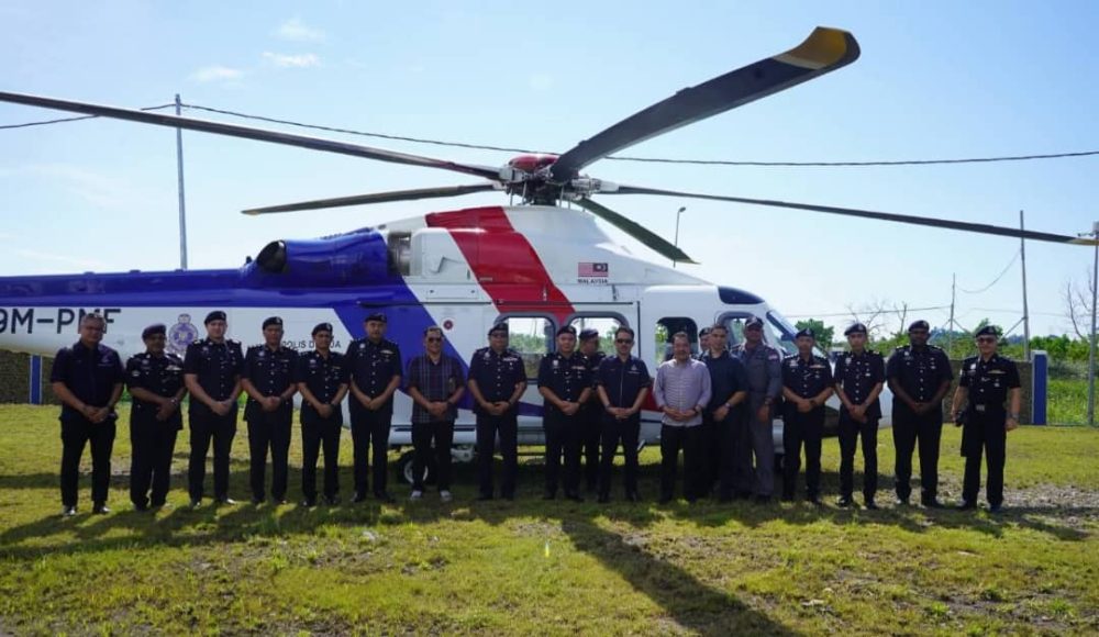 LAWAS: Pesuruhjaya Polis Sarawak Datuk Mohamad Zainal Abdullah tiba di Ibu Pejabat Daerah (IPD) Lawas dari Limbang dengan menaiki helikopter Polis Diraja Malaysia (PDRM) Sabtu lalu.