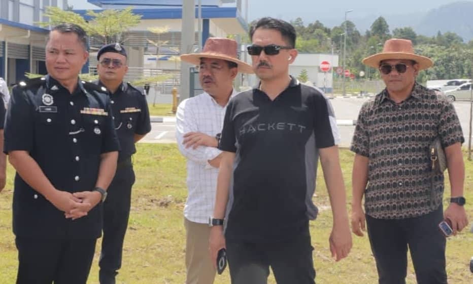 CP Datuk Mohamad Zainal Abdullah bersama rombongan seterusnya melawat bangunan pejabat yang menempatkan Balai Polis Lawas di Jalan Hospital, Lawas, yang mengalami kebakaran akibat litar pintas pada 9 Januari lalu.