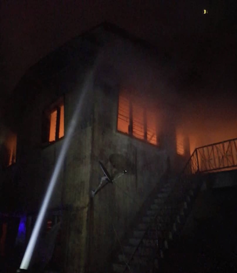 MUSNAH… Sebuah rumah dua tingkat jenis struktur kekal musnah sepenuhnya dalam satu kejadian kebakaran di Jalan Bomba Airport, awal pagi tadi.
