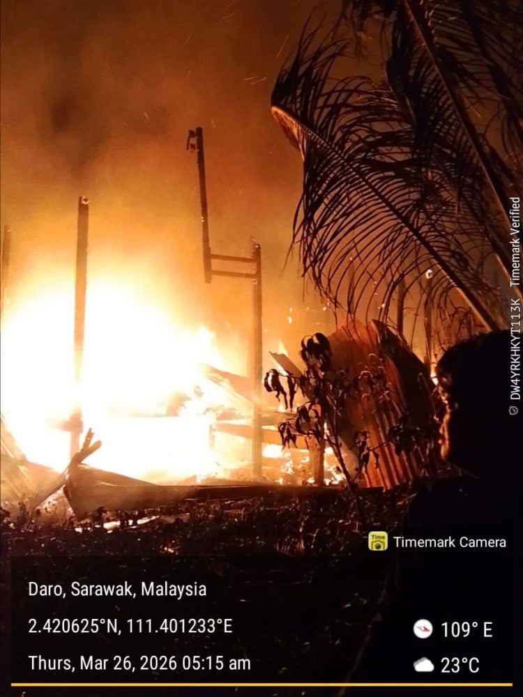Ketua Jabatan Bomba dan Penyelamat Malaysia (JBPM) Zon Sibu, Andy Alie berkata, pihaknya menerima panggilan kecemasan pada jam 4.39 pagi sebelum anggota dari Balai Bomba dan Penyelamat (BBP) Daro dikejarkan ke lokasi bagi menjalankan operasi pemadaman.