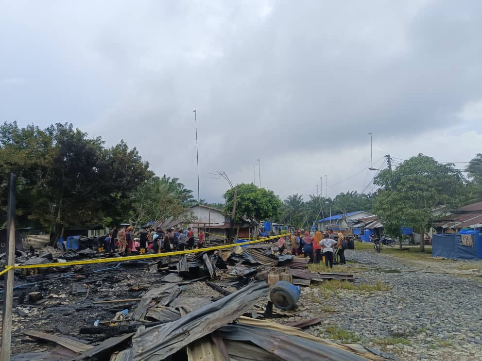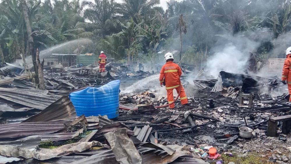 PUSA: Rumah pekerja ladang sawit 10 pintu di Ladang Sawit Enggang, Pusa, musnah sepenuhnya dalam kebakaran pagi tadi, namun kesemua 10 penghuni dilaporkan selamat.