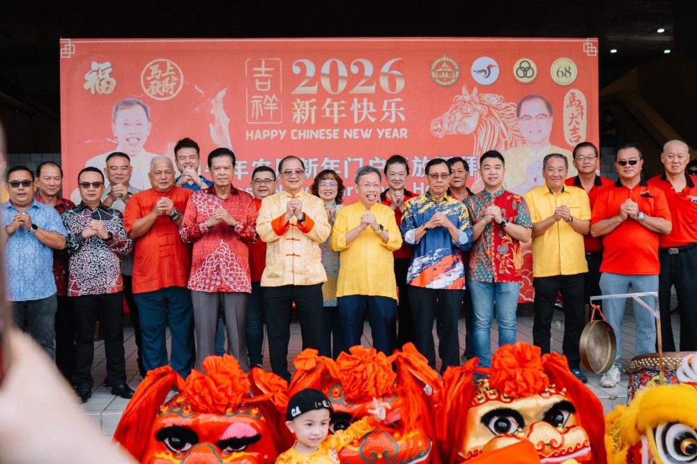 BARISAN pemimpin negeri dan komuniti bergambar bersama sempena Majlis Rumah Terbuka Tahun Baharu Cina 2026 yang menghimpunkan sekitar 2,500 pengunjung pelbagai kaum.