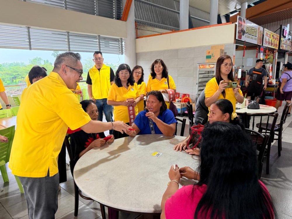Terdahulu, Tiang bersama rombongan mengadakan kunjungan mesra ke kawasan komersial Sungai Merah bagi menyantuni penjaja, peniaga dan orang awam sambil mengagihkan angpau sebagai tanda berkat dan berkongsi kegembiraan sempena Tahun Kuda.