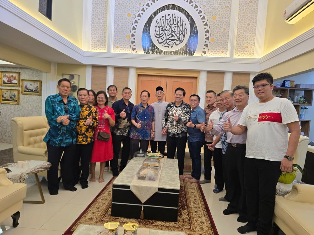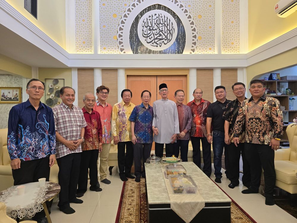 KUNJUNGAN…Cheng (enam kiri) mengetuai Dewan Perniagaan dan Perindustrian Cina Sibu (SCCCI) mengunjungi rumah terbuka Wan Hamid (tujuh kiri).