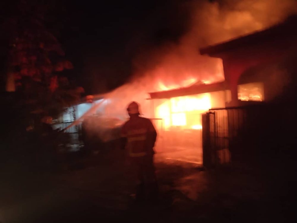 Pasukan bomba masih berusaha memadam api serta mengawal kebakaran daripada merebak ke rumah bersebelahan dengan menggunakan dua aliran hos sepanjang 200 kaki, empat nozel serta satu salur bantu mula.