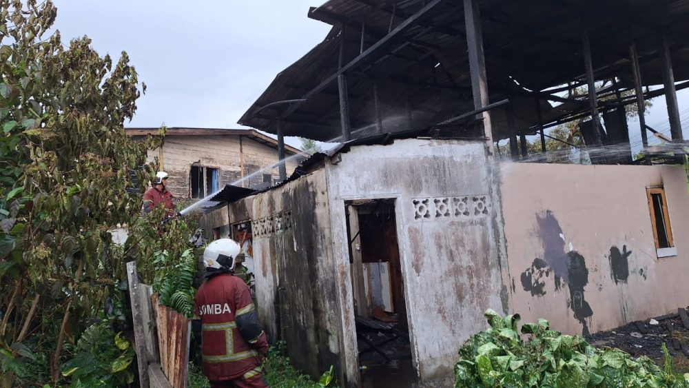 KUCHING: Rumah tidak berpenghuni di Kampung Tabuan Dayak terbakar hampir 60 peratus petang tadi.