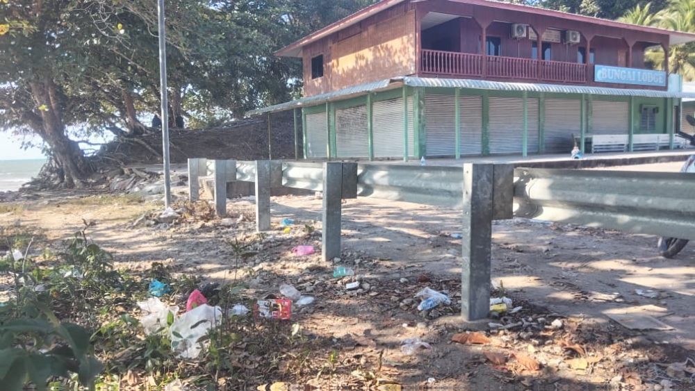 BEKENU: Penduduk Kampung Bungai meluahkan rasa kecewa terhadap sikap segelintir pengunjung yang tidak bertanggungjawab apabila meninggalkan sampah serta merosakkan kemudahan awam di Pantai Bungai.