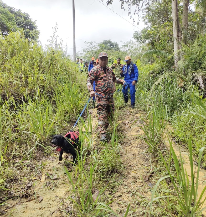 Pasukan SAR turut menggunakan khidmat Unit Anjing Pengesan (K9) JBPM Sarawak melibatkan seekor anjing pengesan, Bella, bersama dua pengendali.
