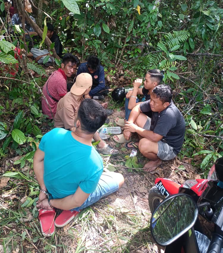 ANGGOTA Tindakan Khas IPD Meradong melakukan serbuan di kawasan hutan Jalan Hing Kwong, Kelupu, Bintangor awal pagi semalam. Foto IPD Meradong