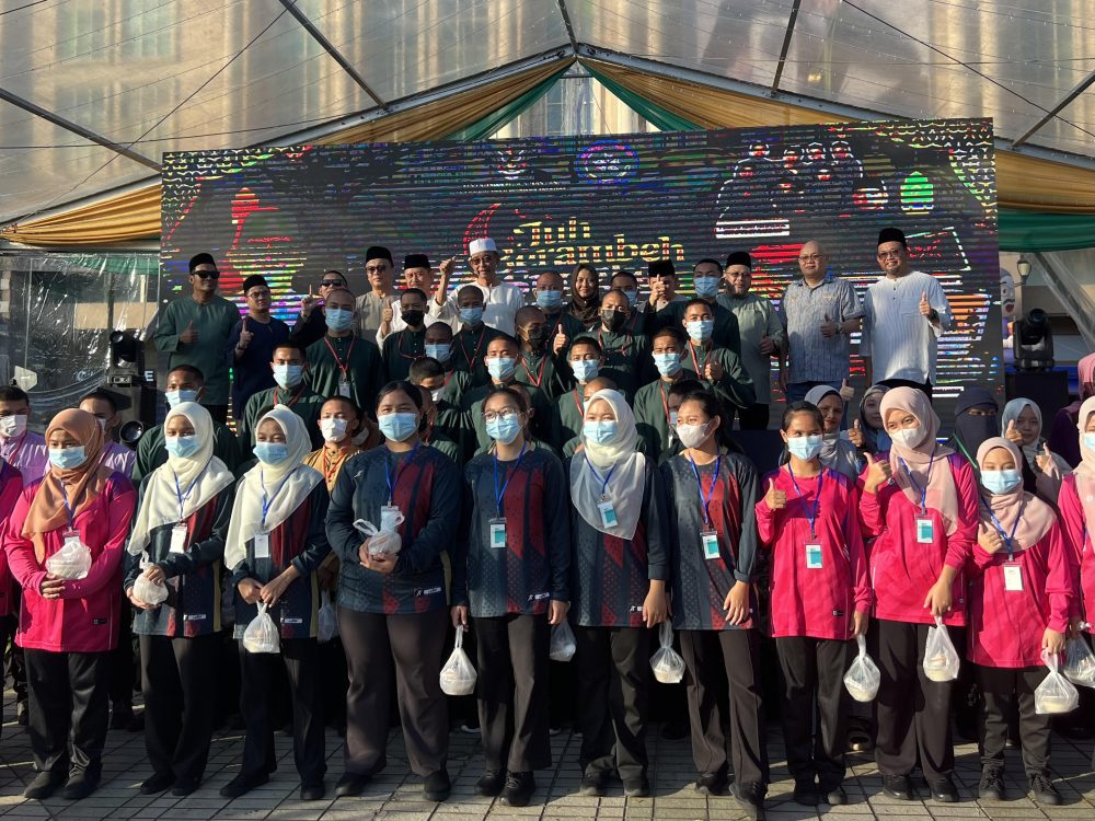 RAKAM kenangan Menteri Pelancongan, Industri Kreatif dan Seni Persembahan, Dato Sri Abdul Karim Rahman Hamzah bersama golongan asnaf yang turut memeriahkan program Juh Berambeh Sungkei di Padang Merdeka di sini petang ini. Foto Adele Rissa