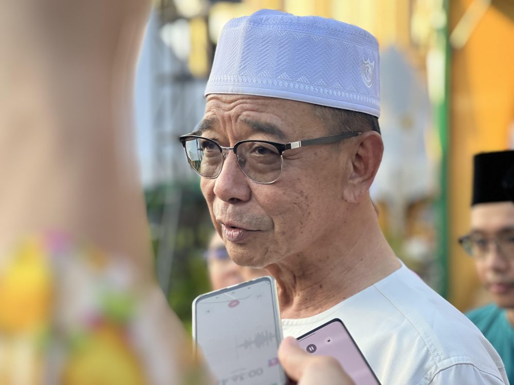 MENTERI Pelancongan, Industri Kreatif dan Seni Persembahan, Dato Sri Abdul Karim Rahman Hamzah bercakap kepada media selepas merasmikan program Juh Berambeh Sungkei di Padang Merdeka petang ini. Foto Adele Rissa