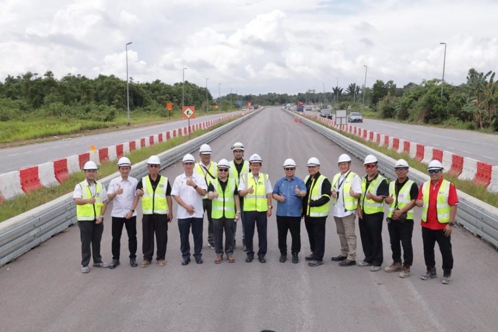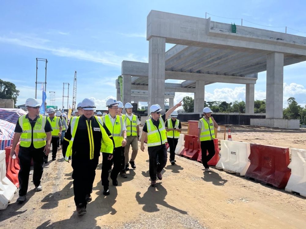 Ketua Pegawai Eksekutif Sarawak Metro, Ts. Mazli Mustaffa (tiga dari kanan) bersama Menteri Pengangkutan Sarawak, Dato Sri Lee Kim Shin, ketika lawatan ke tapak pembinaan Stesen Pertukaran ART di Simpang Tiga. Foto Sarawak Metro