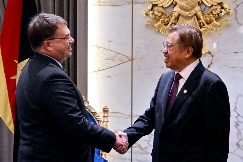 PREMIER Sarawak, Datuk Patinggi Tan Sri Abang Johari Tun Openg bersalaman dengan Edgard D. Kagan ketika menerima kunjungan hormat Duta Besar Amerika Syarikat ke Malaysia itu di Kompleks Satria Pertiwi hari ini. Foto Bernama