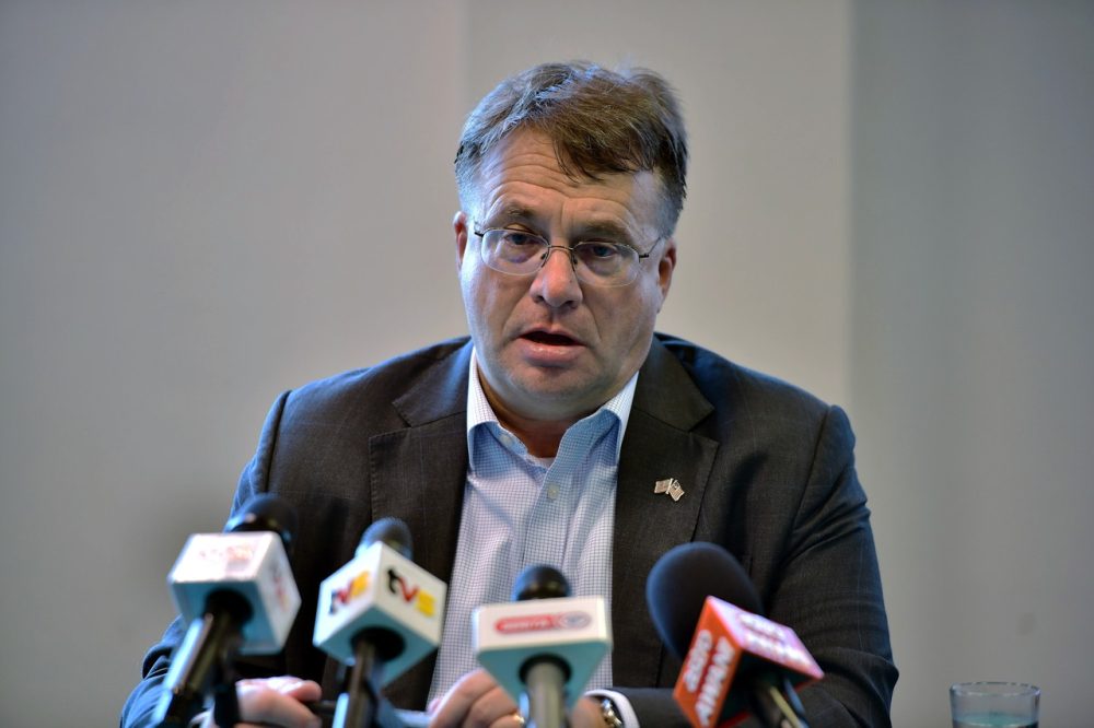 DUTA Besar Amerika Syarikat ke Malaysia, Edgard D. Kagan mengadakan sidang media semasa lawatan ke Pustaka Negeri Sarawak, hari ini. Foto Bernama