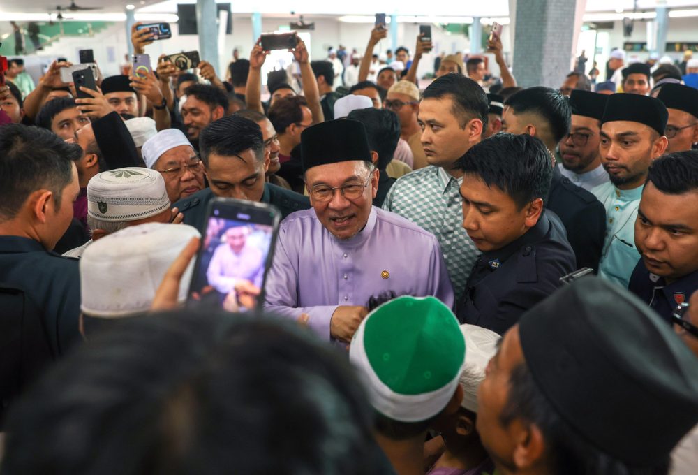 PERDANA Menteri Datuk Seri Anwar Ibrahim beramah mesra dengan jemaah selepas menunaikan solat Jumaat di Masjid Nurussaadah Kampung Cheras Baru, Cheras hari ini. Turut hadir Menteri di Jabatan Perdana Menteri (Hal Ehwal Agama) Dr Zulkifli Hasan. Foto Bernama