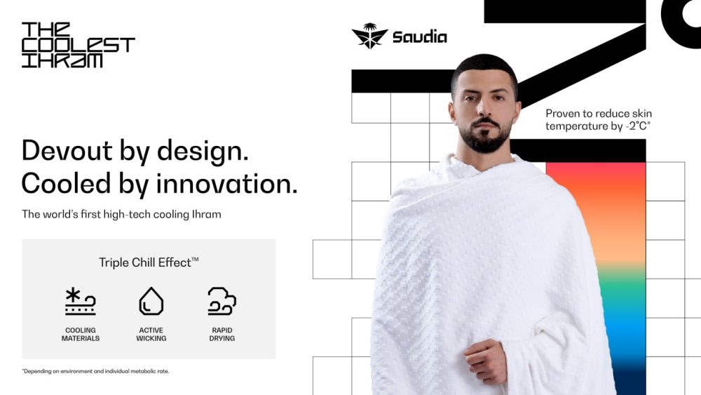 SAUDIA Group memperkenalkan ‘Coolest Ihram’ pertama di dunia dengan teknologi penyejukan bersepadu, memberikan keselesaan maksimum kepada jemaah Haji.