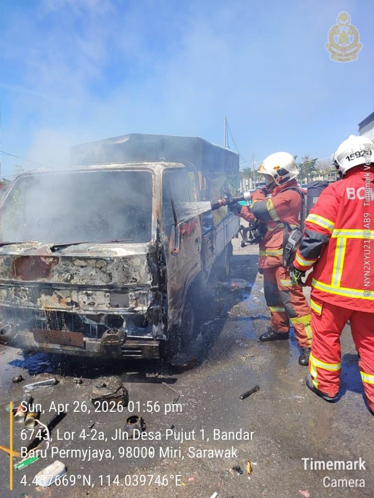 • Sebuah lori musnah dalam kebakaran di Miri