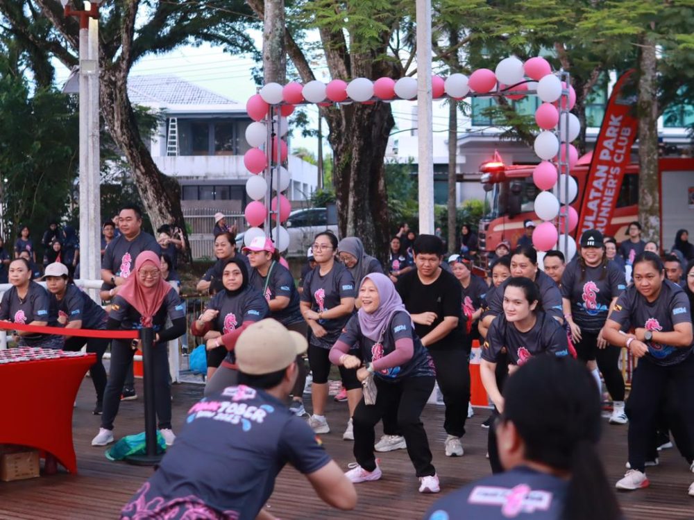 CERIA….Peserta Larian Pinktober Hydro Splash 2025 ceria berlari sambil menyokong kempen kesedaran kanser payudara anjuran Jabatan Pembedahan Am Hospital Miri dan Persatuan Pembedahan Miri.