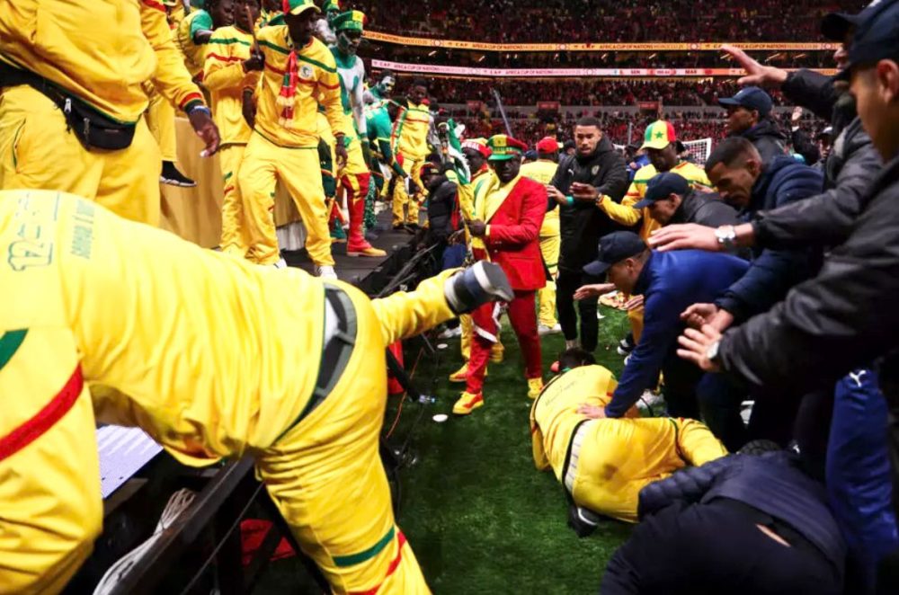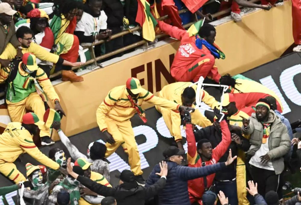 Beberapa pemain Senegal dilihat keluar padang, manakala sebahagian penyokong di satu hujung stadium membaling kerusi dan objek lain serta cuba menceroboh padang sebelum dikawal polis dan petugas keselamatan.