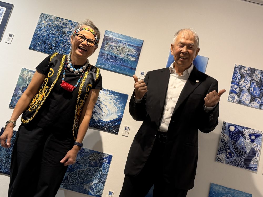 GIMIK perasmian pameran seni Kita Orang: Blue and White 400 International Art Exhibition 2025 di Artavern Art Space, Kota Samarahan, hari ini. Foto Masrin Affirah