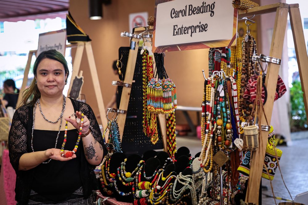 PENGUSAHA manik aksesori Renieda Sigang Ronnie ditemui Bernama bersempena dengan Festival Irama Asli & Asal 2025, di sini baru-baru ini. Manik mungkin dilihat sekadar perhiasan, namun bagi komuniti asal Sarawak, ia merupakan simbol identiti, sejarah dan warisan budaya yang kini diperkenalkan kepada masyarakat di Semenanjung menerusi sentuhan kontemporari. Usaha tersebut digerakkan oleh Renieda, 31, yang kini berpangkalan di Kuala Lumpur, dengan memodenkan rekaan manik tradisional agar lebih praktikal dan sesuai dipakai dalam kehidupan seharian tanpa menghilangkan makna asalnya menerusi jenama “nidmadetings”. Foto BERNAMA